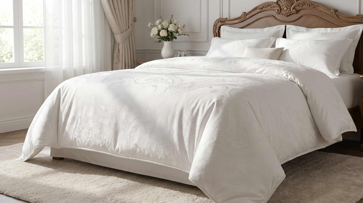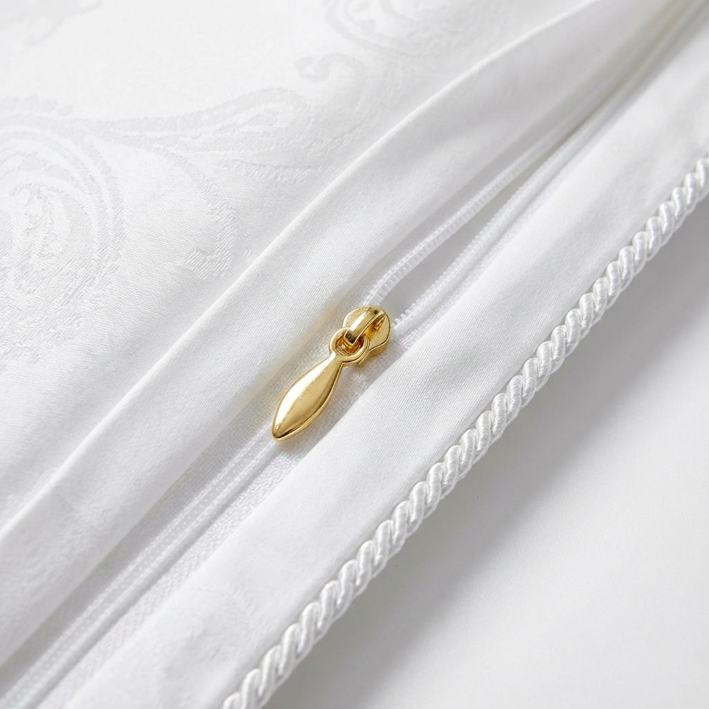 A comfortable blend of elegance and comfort, This BEQUEM Duvet will bring a breath of fresh air to your bedroom decor. The soft quilt is crafted from 100% pure Egyptian Cotton and 1600 Gram of pure Silkworm Silk, perfect for keeping you at a comfortable temperature all year round. The Duvet is extremely smooth embroidered with a lovely frame and equipped with both a zipper to see the inside and 6 tying points which are fully compatible with all BEQUEM's Bed Suits so that the Duvet stay fixed all the time and prevent it from spinning inside the Duvet Cover.